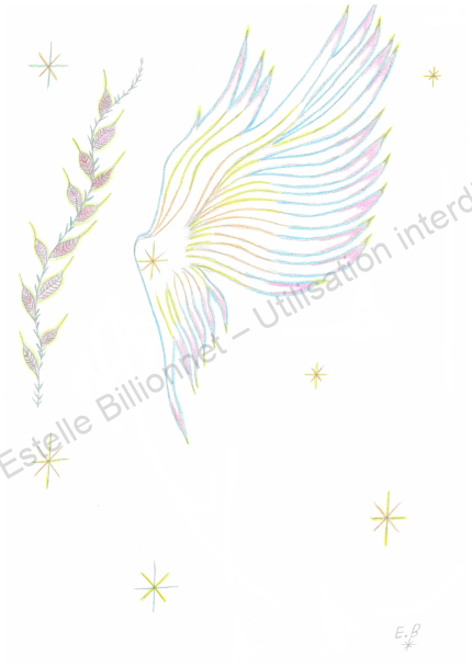 Cette aile entourée d’étoiles évoque la croissance spirituelle et la connexion au sacré.