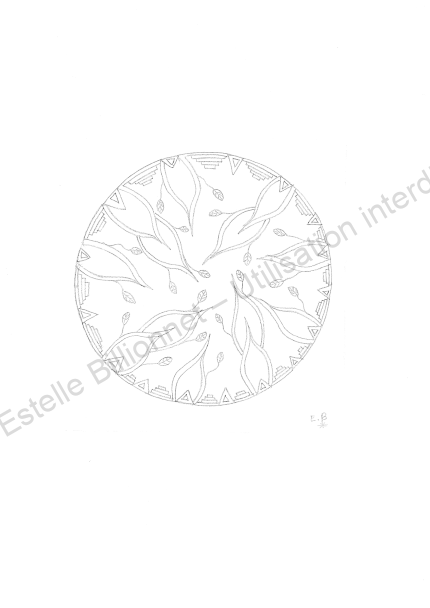 Ce mandala combine des formes géométriques organiques représentant le flux et l’énergie vitale.